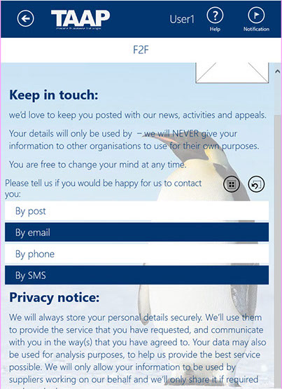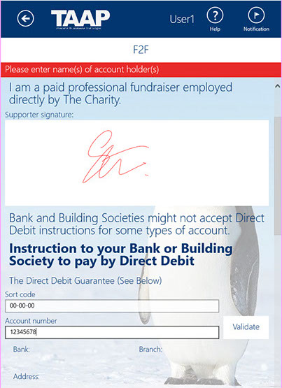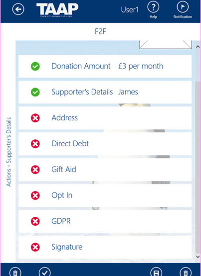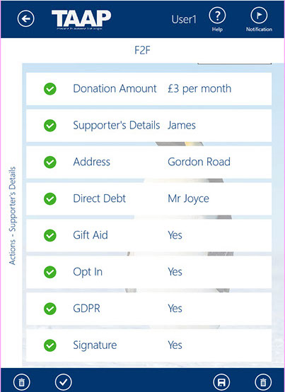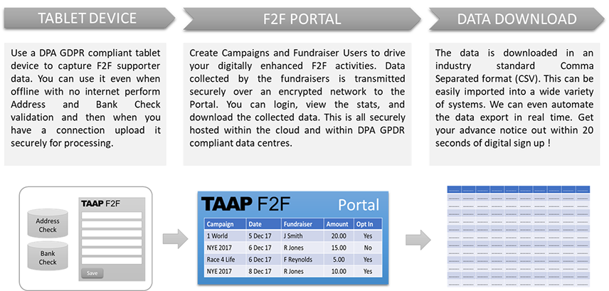 The TAAP F2F fundraising solution is a technology to help you with the processing and handling of sensitive supporter banking and personal information.