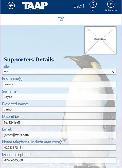 TAAP F2F allows requires the Findraiser photo be taken at the point they are being trained on the system. This then allows the Fundraiser when capturing the Supporters details to check the identity of the person collecting the supporter details.
