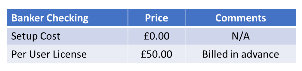 The Bank Checking data is licensed on a per user basis. This data is an annual license and can only be purchased on this basis.